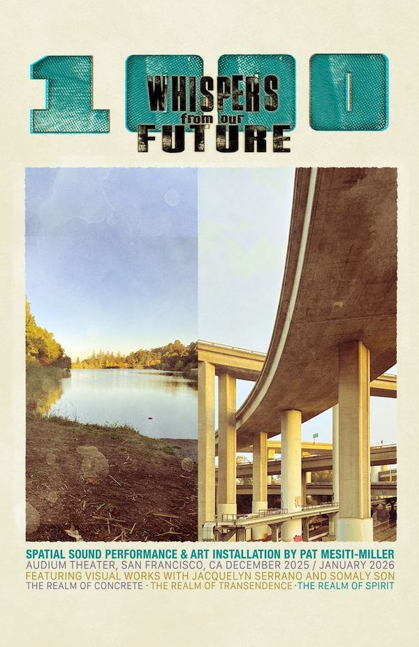 1000 Whispers From Our Future is an auditory excursion that transcends the confines of our physicality and ascends listeners into the waves of the infinite. It pulls from Pat Mesiti-Miller’s near-decade of work inside California prisons, and features the sounds of the physical structures of incarceration, the people living within them, and the power of our collective imagination and spirit.