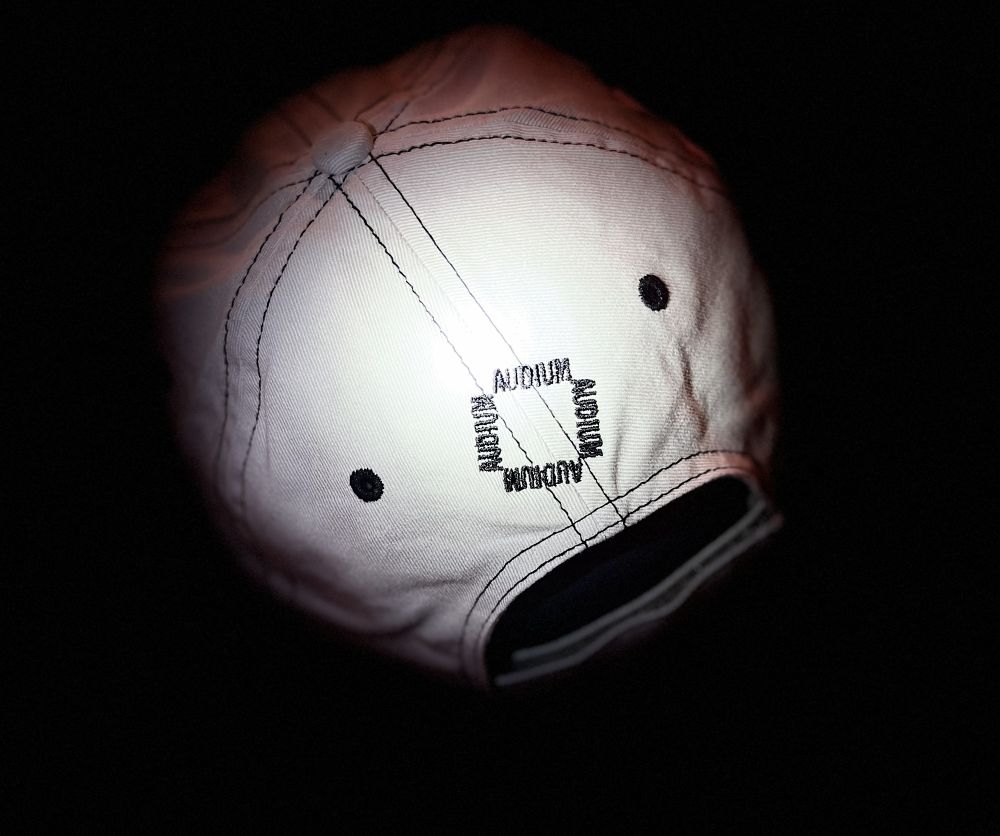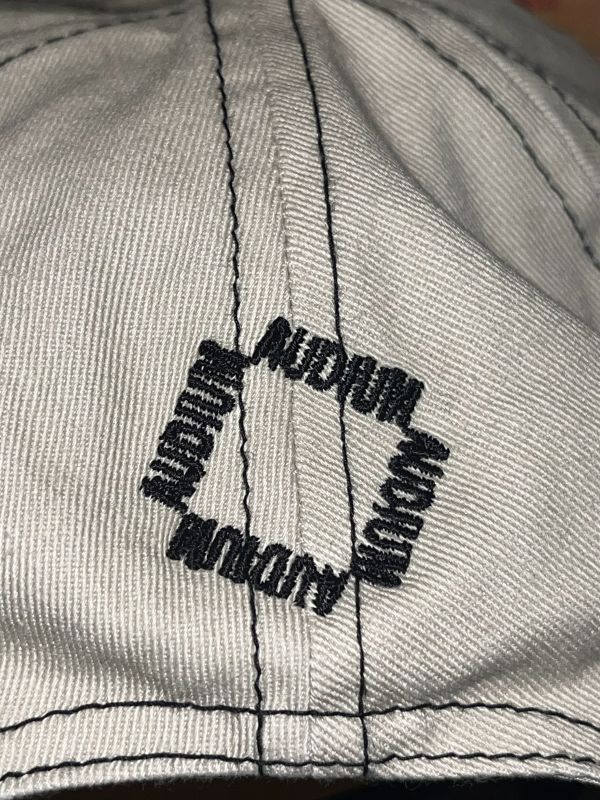 Show your support of Audium- to folks in the know- with a comfy, funky cap. Washed stitch cap with black text on stone white background. “Sound-space” written on the front and Audium’s logo embroidered on the back.