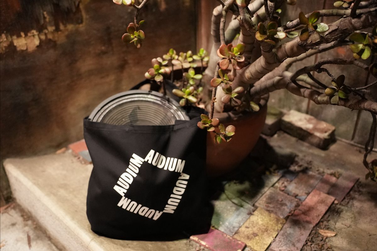 The first-ever Audium Tote Bag—a sleek, durable design perfect for carrying your essentials while showcasing your support for Bay Area sound art.